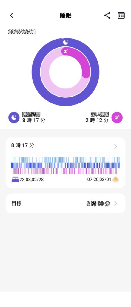 データを見ると、睡眠時間がしっかり確保されているだけでなく、